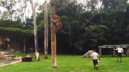 老虎爬树的“高难度”挑战